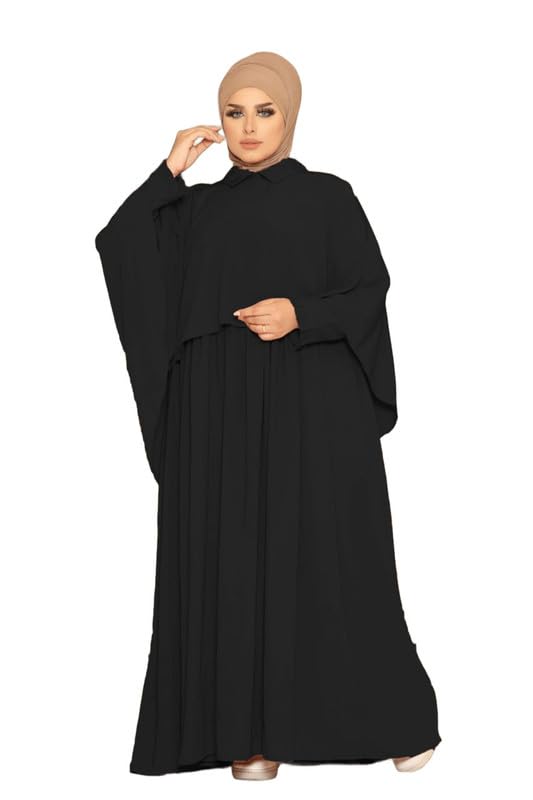 إدناء قطعتين مكون من عبايه و كاب بدون طرحه خامة كريب المقاس موحد يلبس لحد 100 كيلو للنساء , GS-8197Parent GAMAL SONS FOR ABAYA