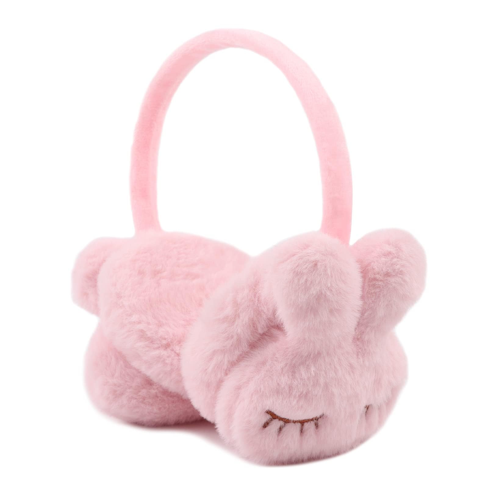 اغطية اذن شتوية للنساء والفتيات للطقس البارد، اغطية مخملية ناعمة لطيفة لتدفئة الاذن، عصابة راس قابلة للطي، غطاء اذن منفوش للاطفال والبنات، ارنب بينك، مقاس واحد