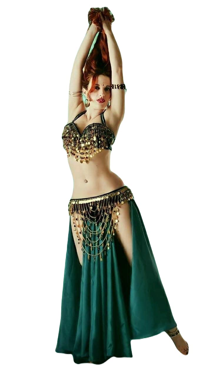 بدلة الرقص الشرقي الفاخرة والمصنوعة يدويًا بالكامل، متعدد الألوان، قياس واحد، للنساء
