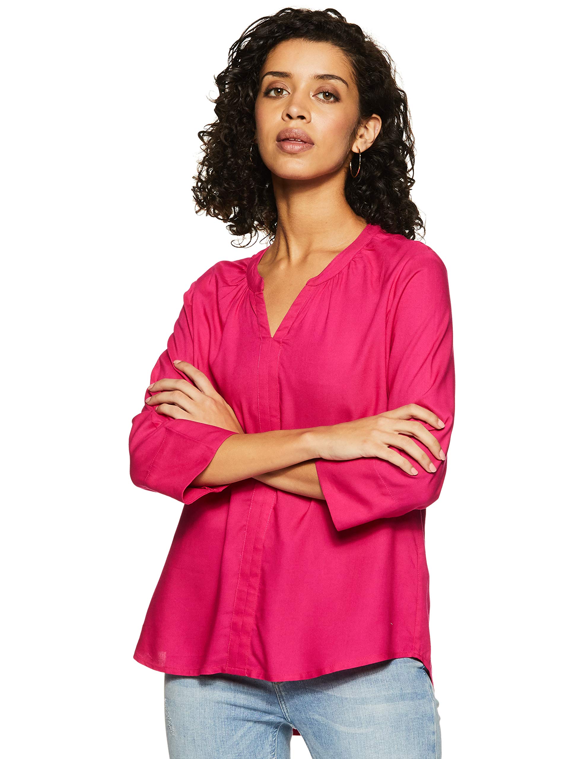 بلوزة بقصة عادية للنساء ولون سادة من أمازون براند – سيمبول