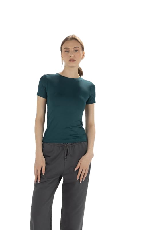بلوزة بيسيك نصف كم برقبة دائرية ضيقة للنساء من ديس اند ميس
