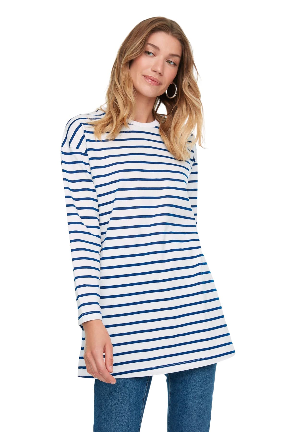 بلوزة طويلة منسوجة ومخططة للنساء من ترنديول، موديل TCTAW22UK0240