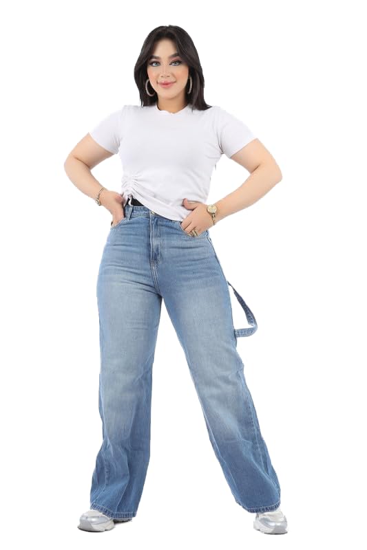 / بنطلون جينز بارجل واسعة للنساء بلون ازرق فاتح