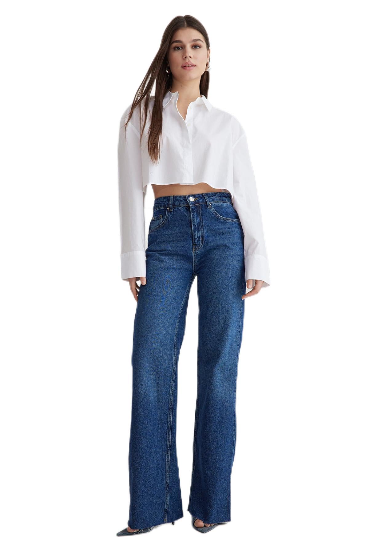 بنطلون جينز بخصر مرتفع وارجل واسعة للنساء، طراز Twoss25Je00065 من ترنديول