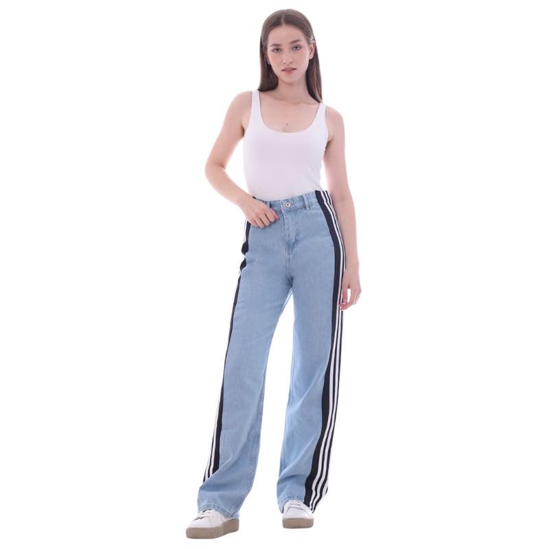 بنطلون جينز بقصة مستقيمة من الجانب مع خطوط باللونين الابيض والاسود للنساء ماميلي