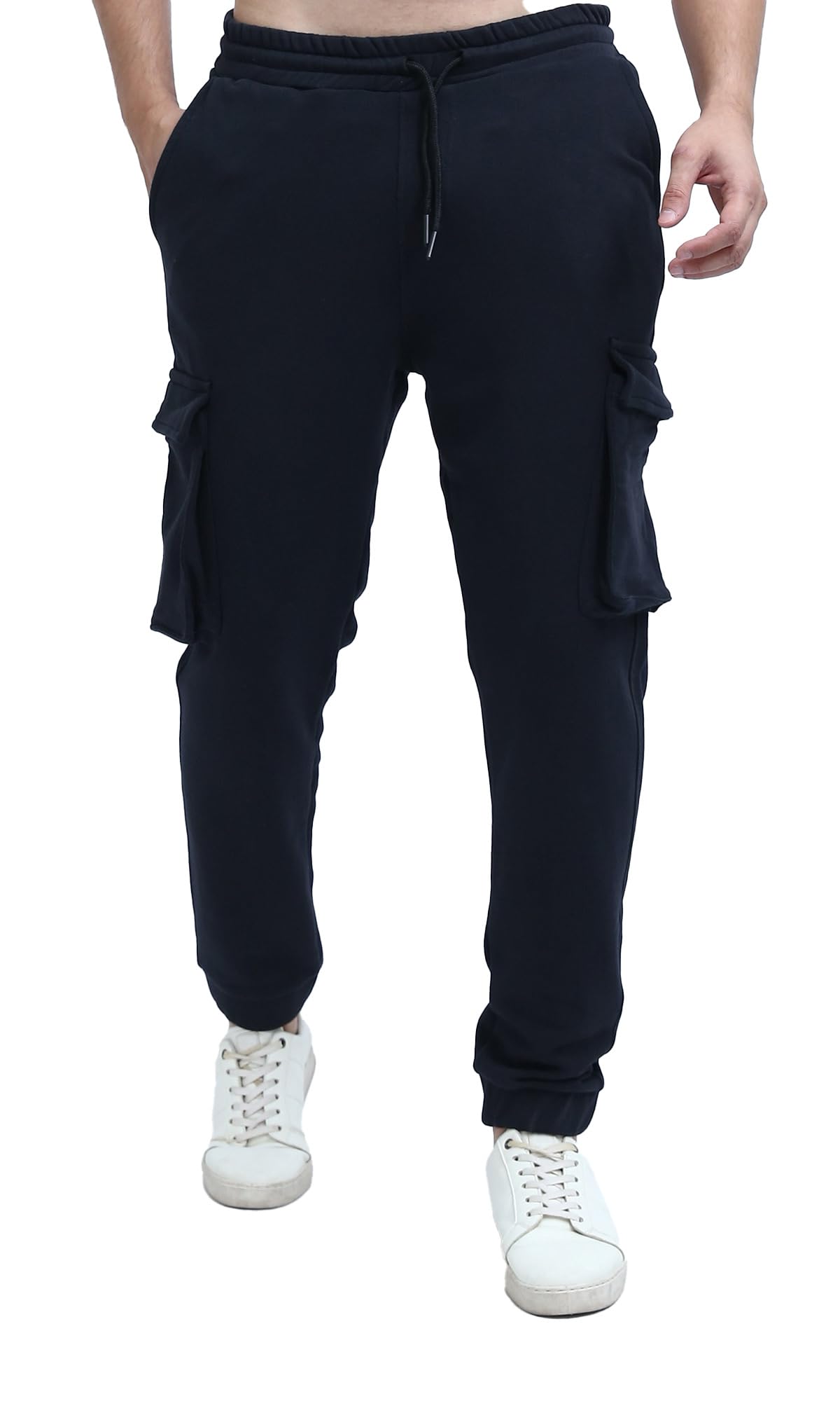بنطلون كارجو سادة سهل الارتداء بخصر أستك للرجال من ريفين، لون أسود