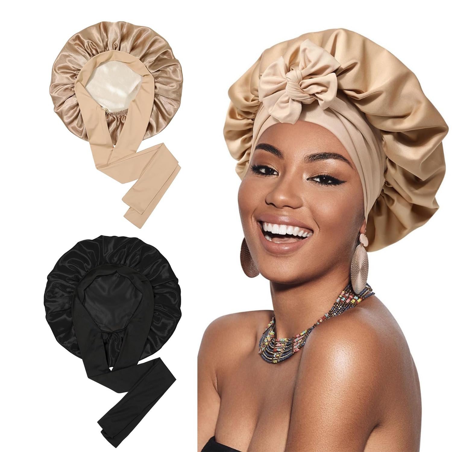بونيه حريري 100% للنوم، 22 موم بيور ملبيري حريري حريري للنساء قبعة نوم للنساء مع لفافة شعر مرنة قابلة للعكس