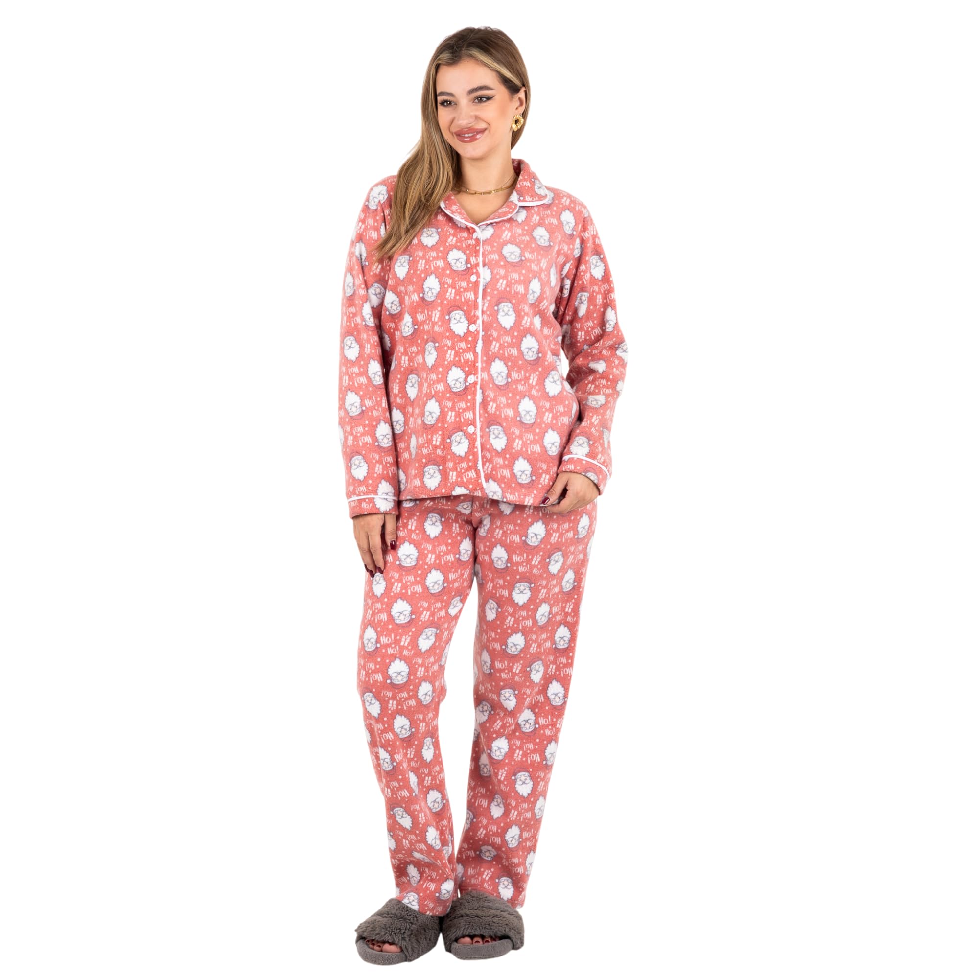بيجامة شتوية كلاسيكية من صوف البولار الناعم للكريسماس للنساء، طقم ملابس نوم ناعمة دافئة للشتاء، صناعة مصرية من زدكوتكس