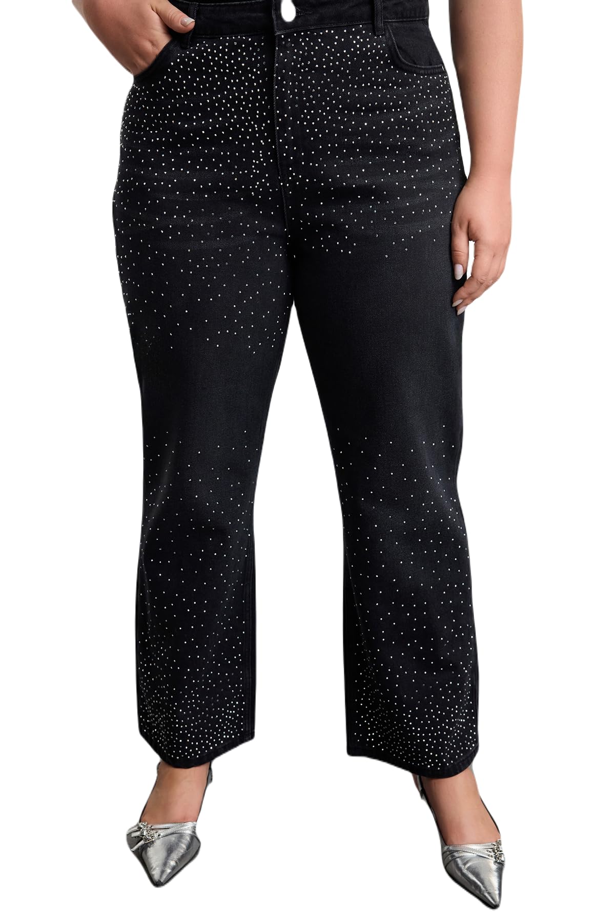 ترنديول بنطلون جينز بقصة مستقيمة وخصر مرتفع للنساء بلون رصاصي TBBAW25CJ00000 مقاس كبير