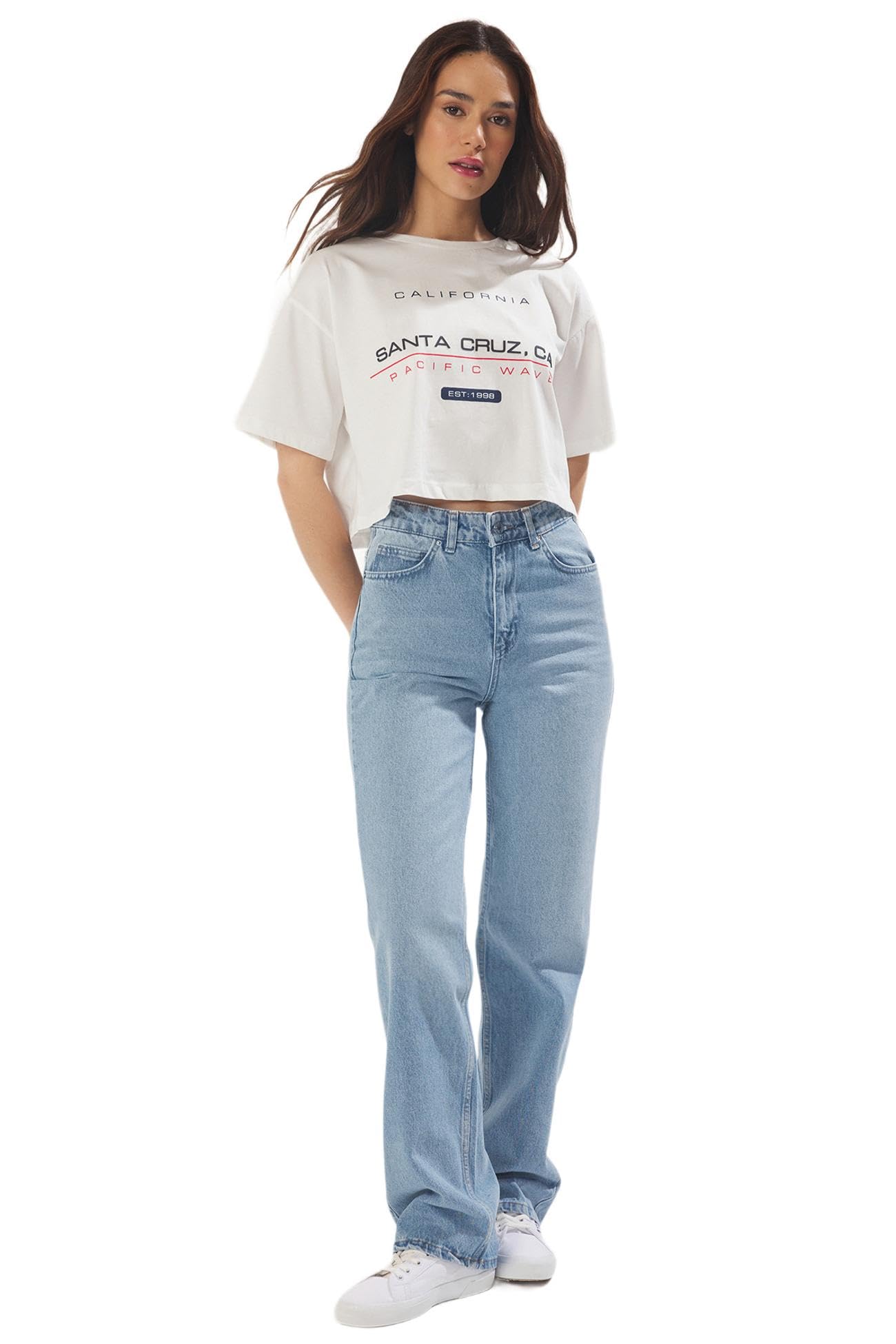 بنطلون جينز بقصة مستقيمة وخصر مرتفع لون ازرق Twoss25Je00143