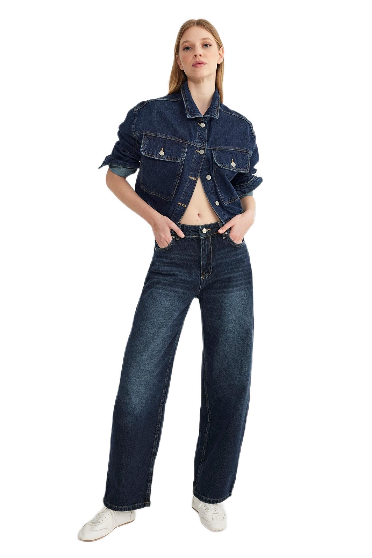 ترنديول بنطلون جينز فضفاض بخصر عادي للنساء TWOSS25JE00090