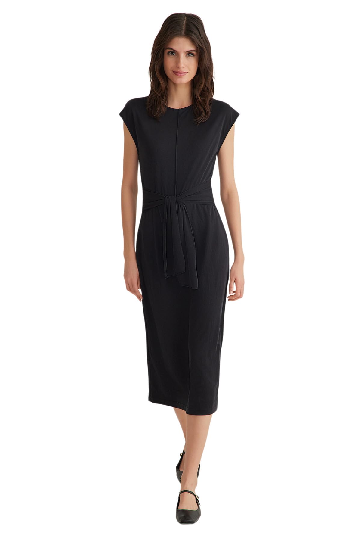 فستان بيكيه منسوج ناعم سادة بحزام بلون اسود TWOSS25EL00072