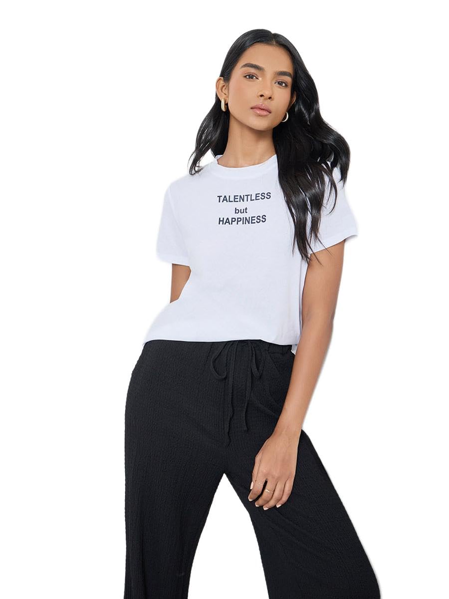 تيشرت ابيض مطبوع عليه شعار للنساء من ستايلي