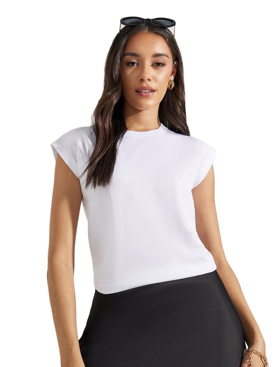 تيشرت قطن بقصة عادية واكمام قصيرة على الكتف للنساء من ستايلي