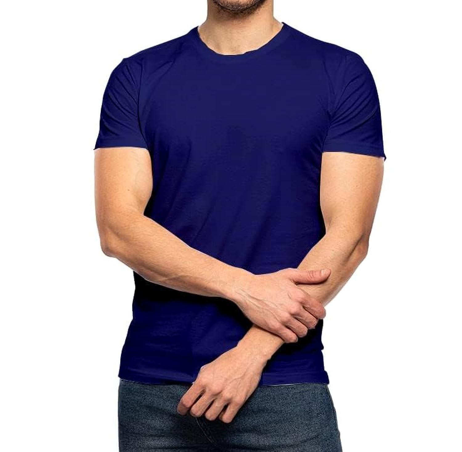 تيشرت قطن سادة بيسيك برقبة دائرية واكمام قصيرة من بوصلة لون كحلي مقاس اوفر سايز 4 اكس، 4XL