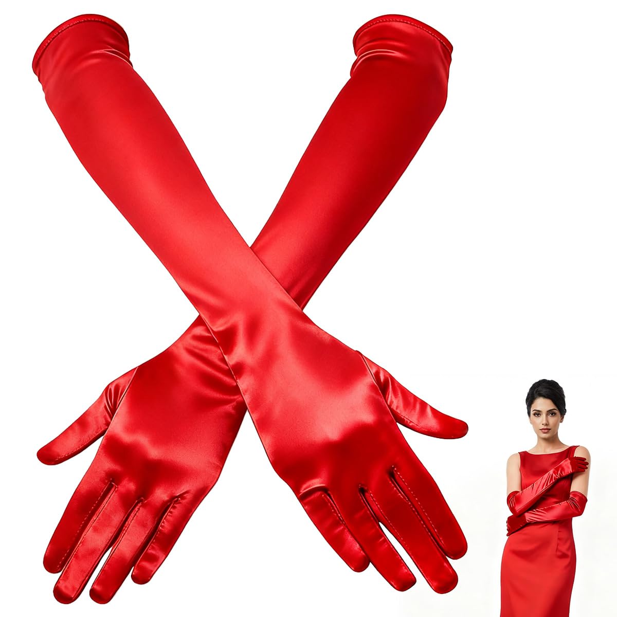 تي تيرسيلي مجموعة قفازات اوبرا من الساتان المرن – طول الكوع بطول 21 انش/ 53 سم، نمط كلاسيكي من عشرينيات القرن الماضي للنساء للحفلات المسائية والرقص