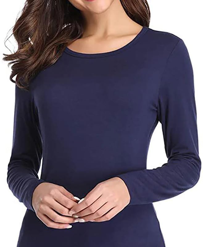 تي شيرت للنساء، قطن ليكرا بأكمام طويلة ورقبة دائرية ضيقة من رويال بينك