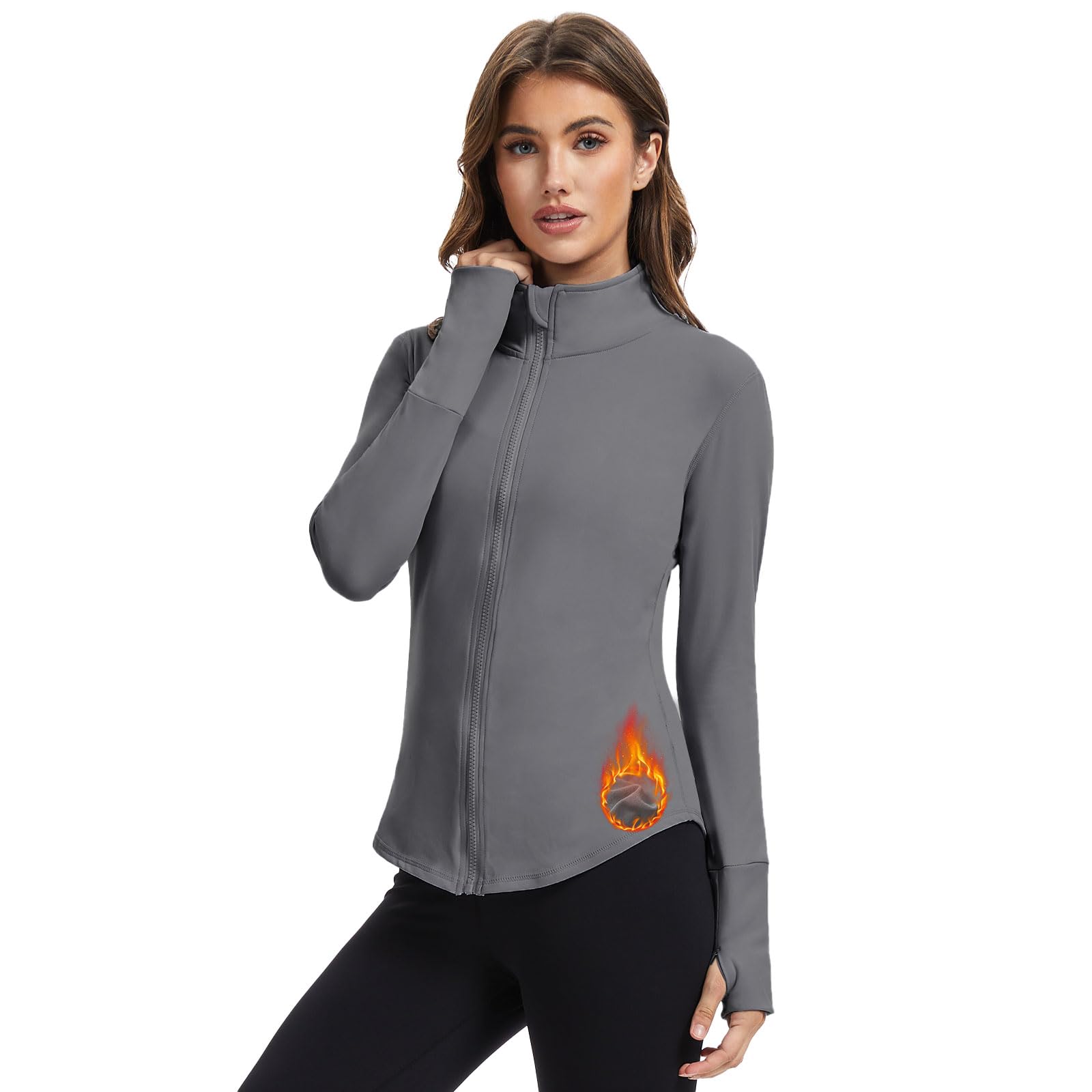 جاكيت رياضي حراري للنساء من ويزيبر بقصة ضيقة مبطن بالصوف للجري بسحاب وأكمام طويلة للحماية من الشمس