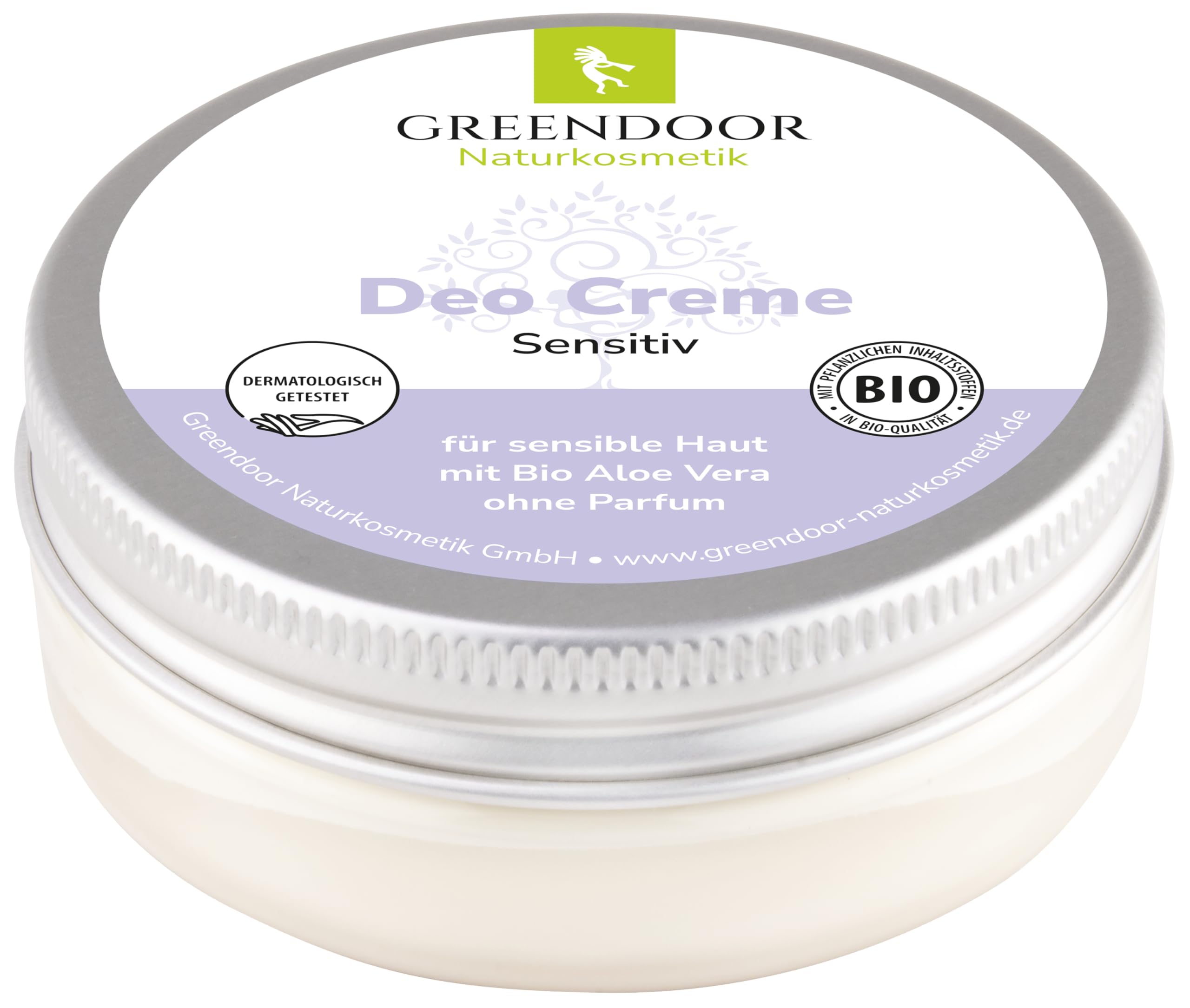 جريندور كريم مزيل عرق سينسيتف 50 مل، مزيل عرق طبيعي فعال بدون عطر وبدون الومنيوم نباتي، برطمان مصنوع من البلاستيك القديم 100%، مع زيت جوز الهند العضوي البكر، زبدة الكاكاو العضوية