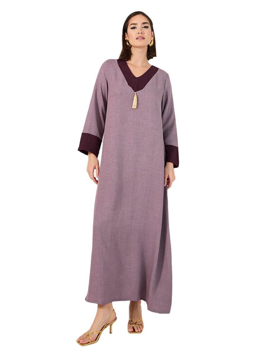 جلابية بأساور عريضة متباينة مع تفاصيل شراشيب للنساء من ستايلي
