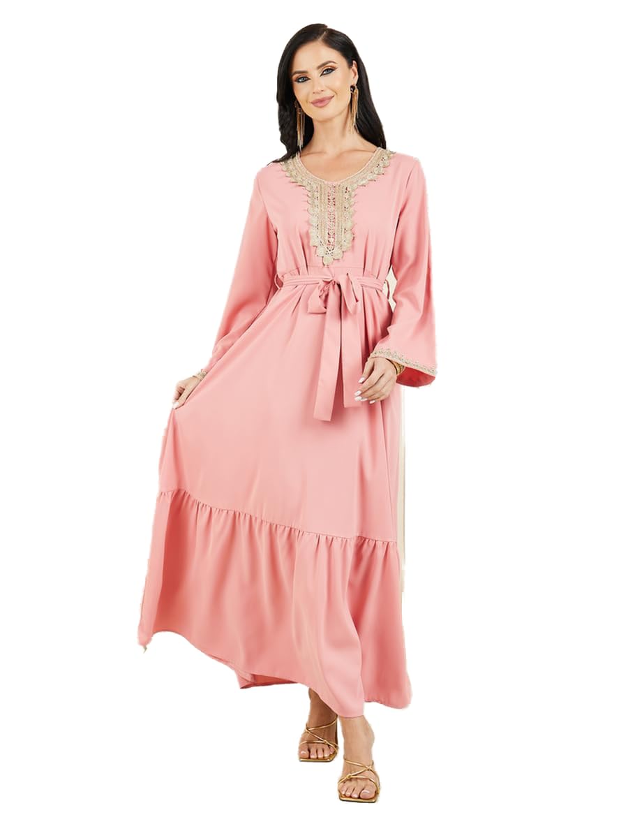 جلابية للنساء من ستايلي بطبقات ورقبة دانتيل ورباط ذاتي