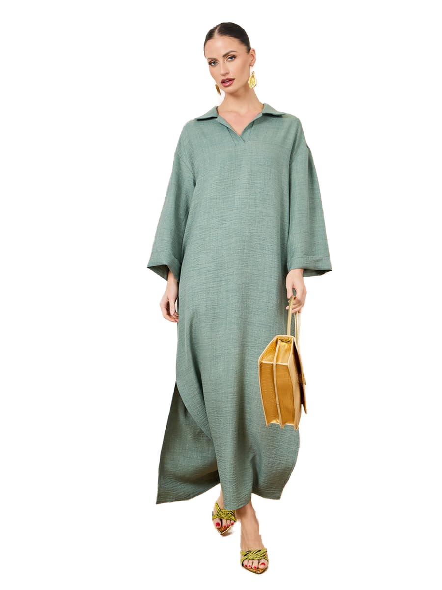 جلابية منسوجة بياقة للنساء من ستايلي