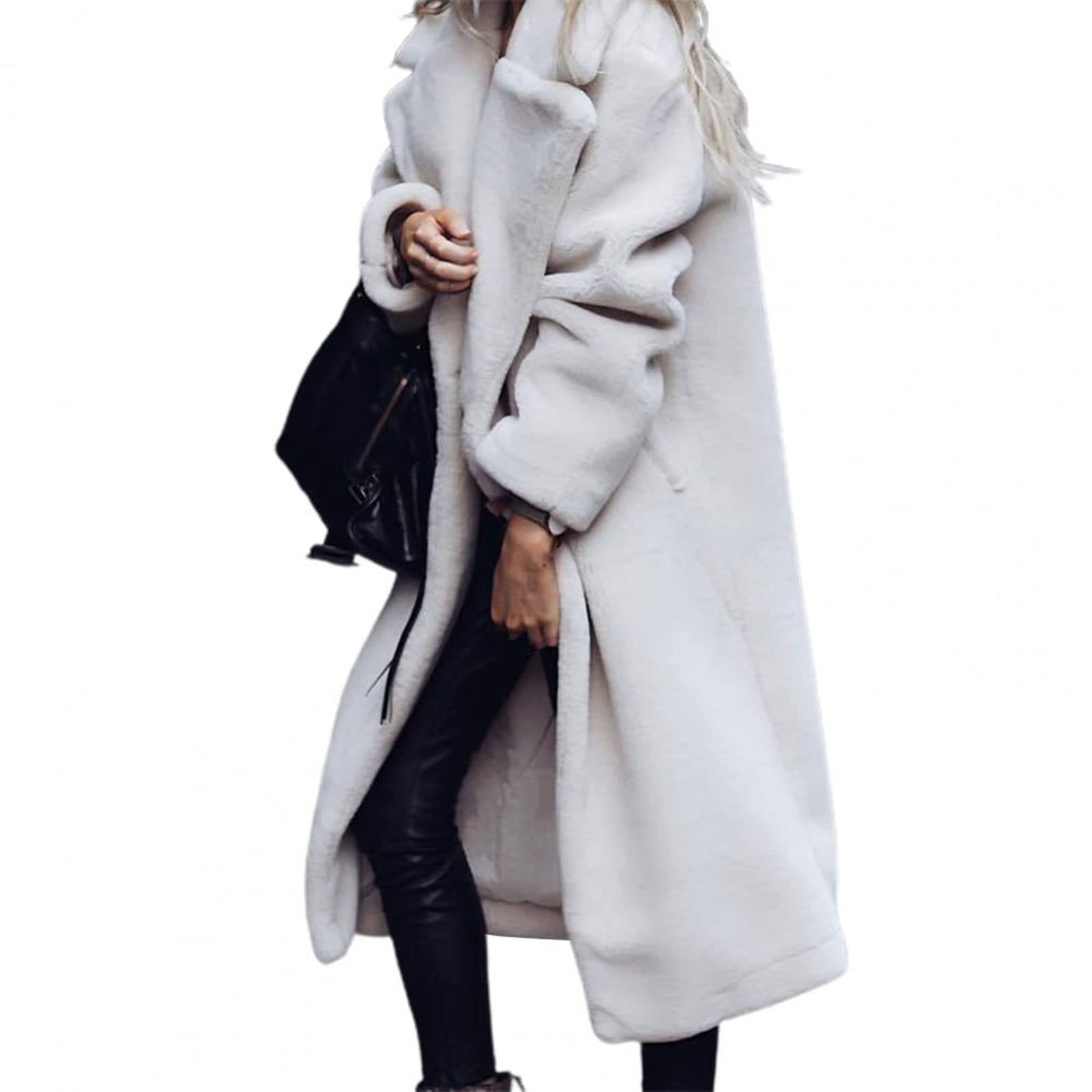 جي ار تي معطف رائع فضفاض طويل للغاية للنساء شتوي مخملي ملابس شتوية للمواعدة اللون: ابيض المقاس: M