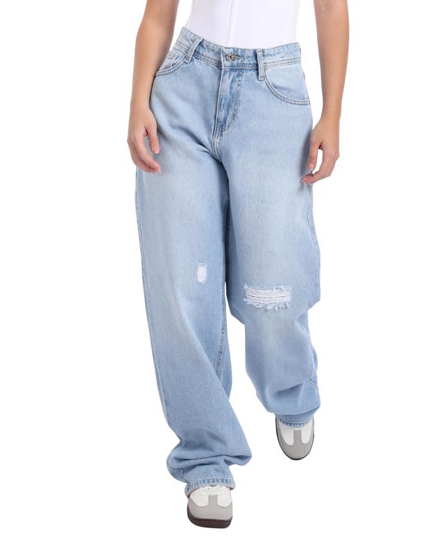 جي بي اس دينيم بنطلون جينز حريمى وايد ليج فاشون ثلجى اللون 1389