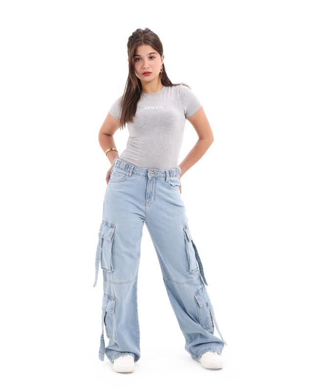 جي بي اس دينيم بنطلون جينز حريمى وايد ليج كارجو ثلجى اللون 1495