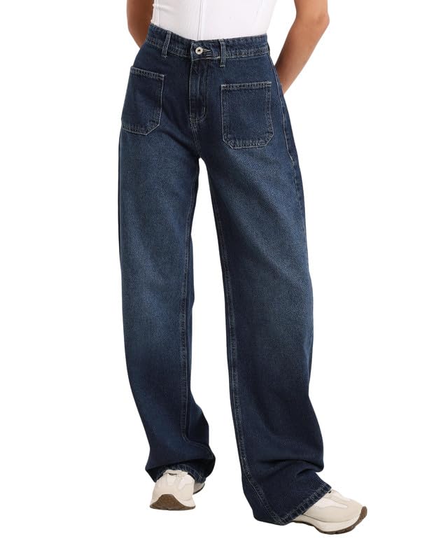 جي بي اس دينيم بنطلون جينز حريمى وايد ليج جيب امامى ازرق اللون 1485