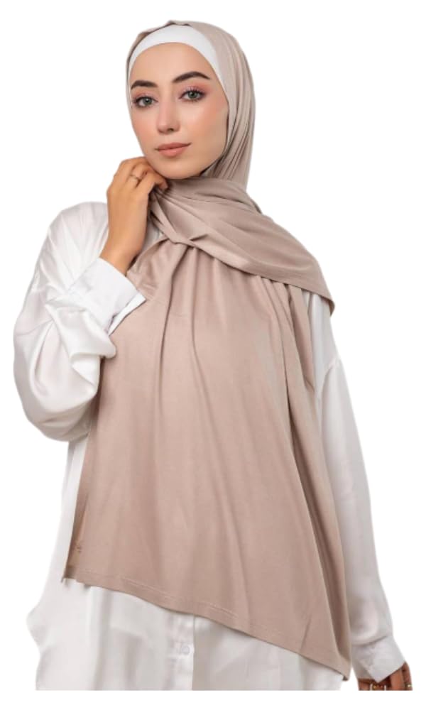 حجاب جل سادة من القطن المصري 100% مع ليكرا، سكارف خفيف الوزن ومزود بمسامات للتهوية للنساء، 63 سم × 1.7 متر