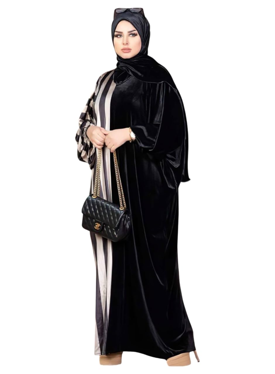 إسدال قطيفة فاخر بتصميم عصري يجمع بين الأناقة والحشمة. يتميز هذا الإسدال بقماش القطيفة الناعم الذي يضفي لمسة فخامة ودفء مثالي للمواسم الباردة. التصميم يشمل أكمام واسعة مريحة وخطوط جانبية أنيقة باللونين الأبيض والأسود تضيف لمسة عصرية متميزة. القصة الفضفاضة المريحة تناسب مختلف المناسبات والسهرات، كما أن الحجاب المنسق يكمل الإطلالة المحتشمة. الإسدال مصمم بعناية لتوفير الراحة والأناقة، مع قماش قطيفة عالي الجودة يمنح إحساساً بالدفء والفخامة. مثالي للمناسبات الرسمية والسهرات الشتوية، ويمكن تنسيقه مع مختلف الإكسسوارات لإطلالة متكاملة. التصميم العملي يجمع بين الأصالة والعصرية، مما يجعله خياراً مثالياً للمرأة المحجبة العصرية التي تبحث عن التميز والأناقة.
