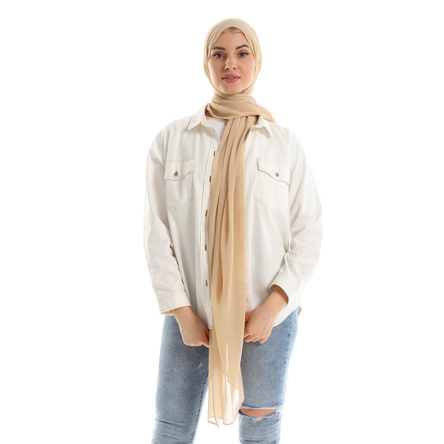حجاب من قماش الشيفون والكريب بلون سادة للنساء – بيج