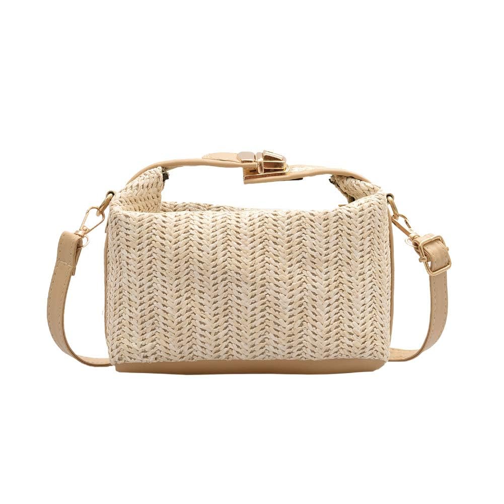 حقائب طويلة تمر بالجسم للنساء، حقيبة منسوجة كتف، كروس بودي عصرية يد محفظة شاطئ عطلة، بيج