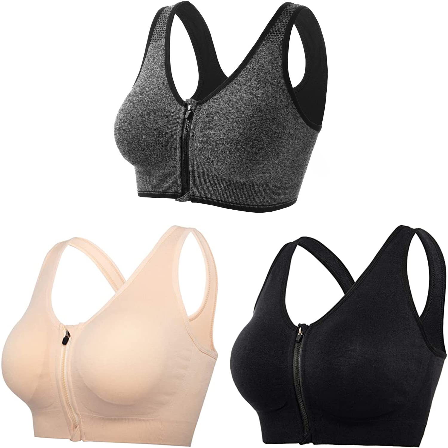/ حمالة صدر رياضية بسحاب امامي للنساء، ملابس داخلية لاسلكية جيدة التهوية للجري النشط وصالة الالعاب الرياضية واليوغا عالية التأثير