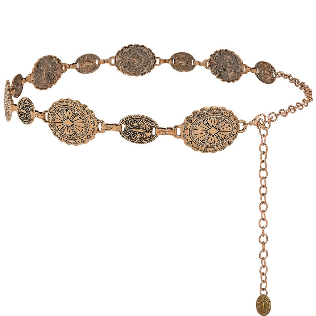حنايا سلسلة خصر معدنية ذهبية للنساء، حزام خصر كونشو وساري، حزام عصري بوهو غربي قابل للتعديل، احزمة سلسلة للنساء للفساتين والجينز والتنانير