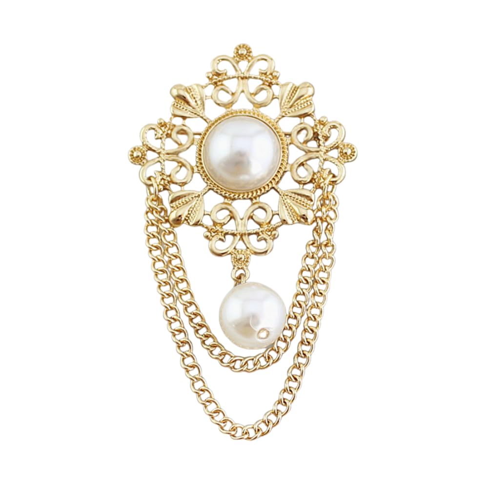 دبوس بروش عتيق مزين باللؤلؤ الذهبي، سلسلة بوهو انيقة على شكل زهرة بشراشيب، مجوهرات متدلية متدلية للنساء والفتيات – مثالي للحفلات والرقص والولائم