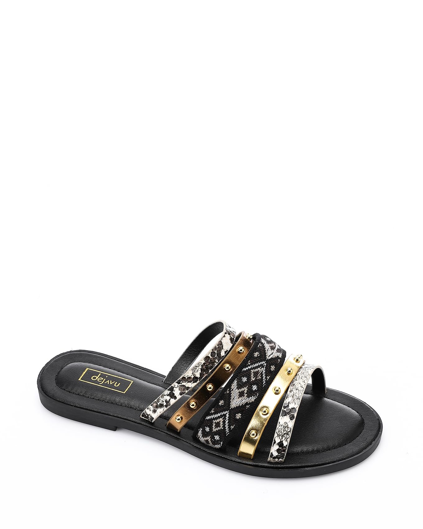 ديجافو شبشب متعدد الأشرطة للنساء من JAL-DJTV-035 – اسود وذهبي ورمادي، متعدد الالوان، 37، خامة الجزء العلوي، جلد الجزء الداخلي، نعل مطاطي مفتوح من الامام سهل الارتداء