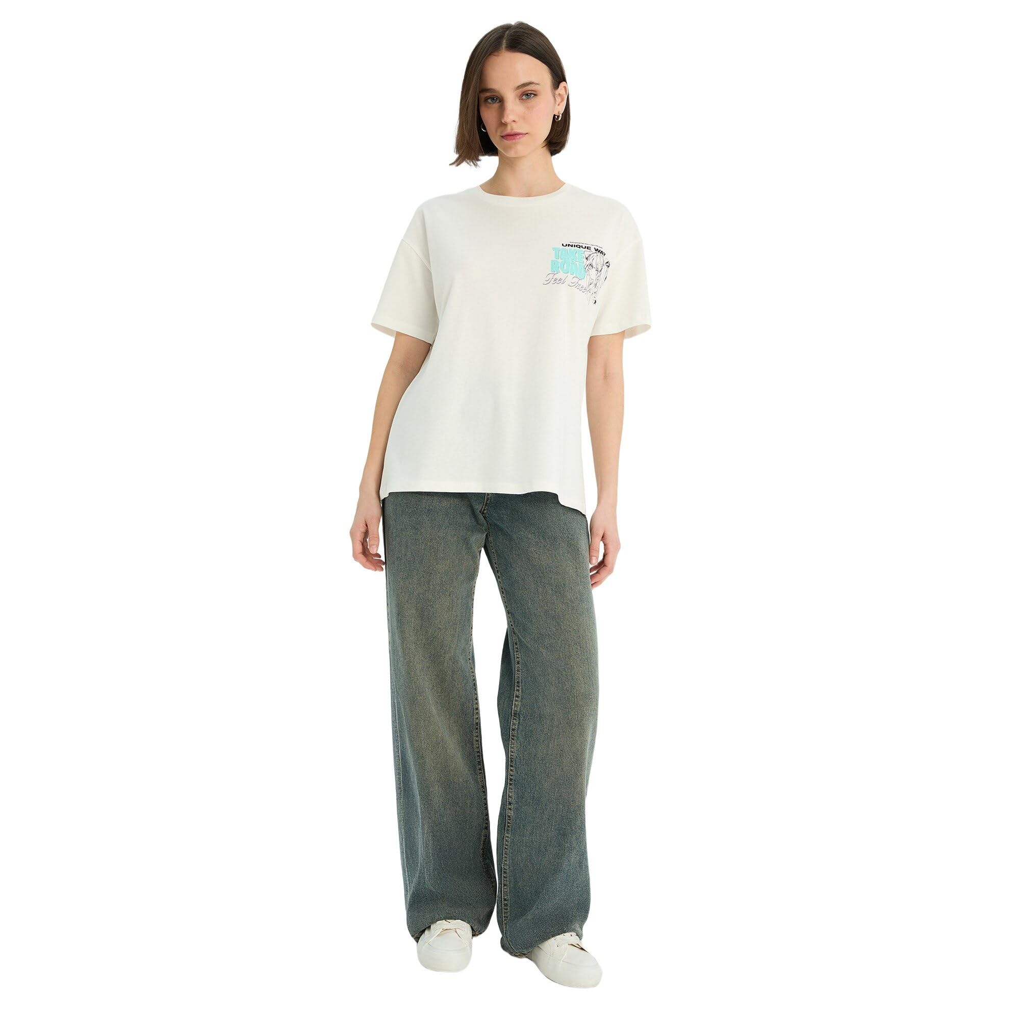 ديفاكتو تيشرت محبوك باكمام قصيرة وقصة كبيرة وقبة C للنساء من كوول، لون اوف وايت، مقاس XL