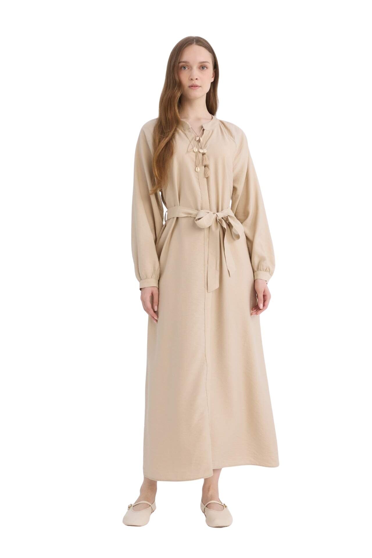 ديفاكتو فستان نسائي من سي ان اس بقصة مريحة وقبة مائلة واكمام طويلة وتنورة منسوجة (عبوة من قطعة واحدة)