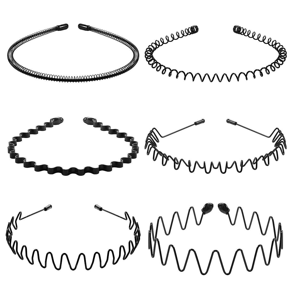 ربطات شعر معدنية مموجة 6 قطع، أطواق رأس مرنة زنبركية مموجة للجنسين للنساء والرجال، أطواق شعر معدنية عصرية رياضية، إكسسوارات غطاء للرأس، لون أسود من اي سي في في