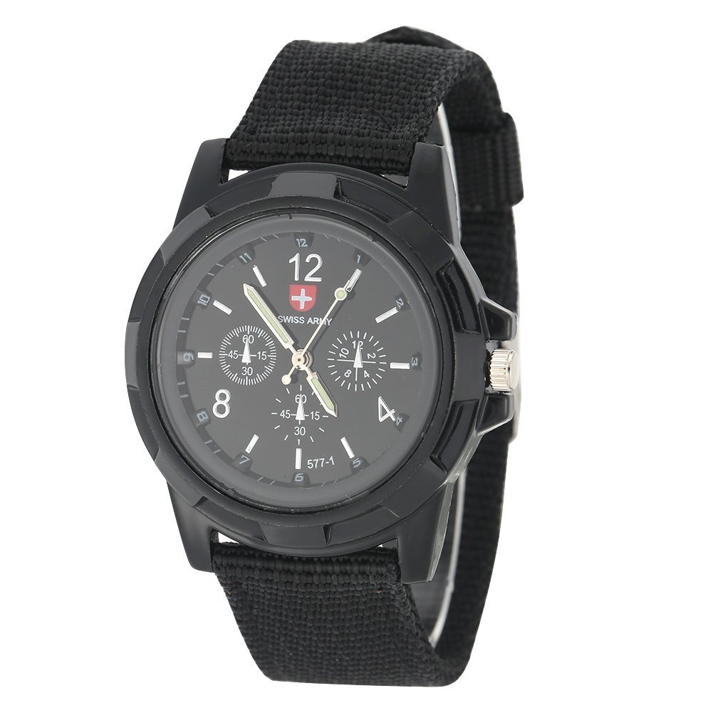 ساعة عسكرية للرجال، متينة رياضية خارجية، يد للارتداء اليومي، انالوج كوارتز، بسوار من النايلون، هدية تخرج أسود