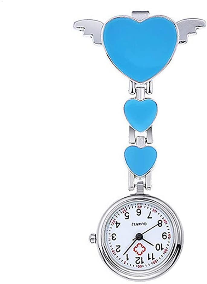 ساعة للنساء والسيدات، بمينا زرقاء سماوية، تصميم قلب مع مشبك للممرضات