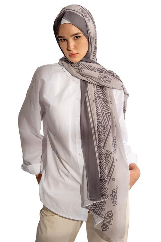سكارف حجاب شيفون مطبوع للنساء من الامكي – خفيف الوزن مقاس 200 × 75 سم – متعدد الالوان PT0032