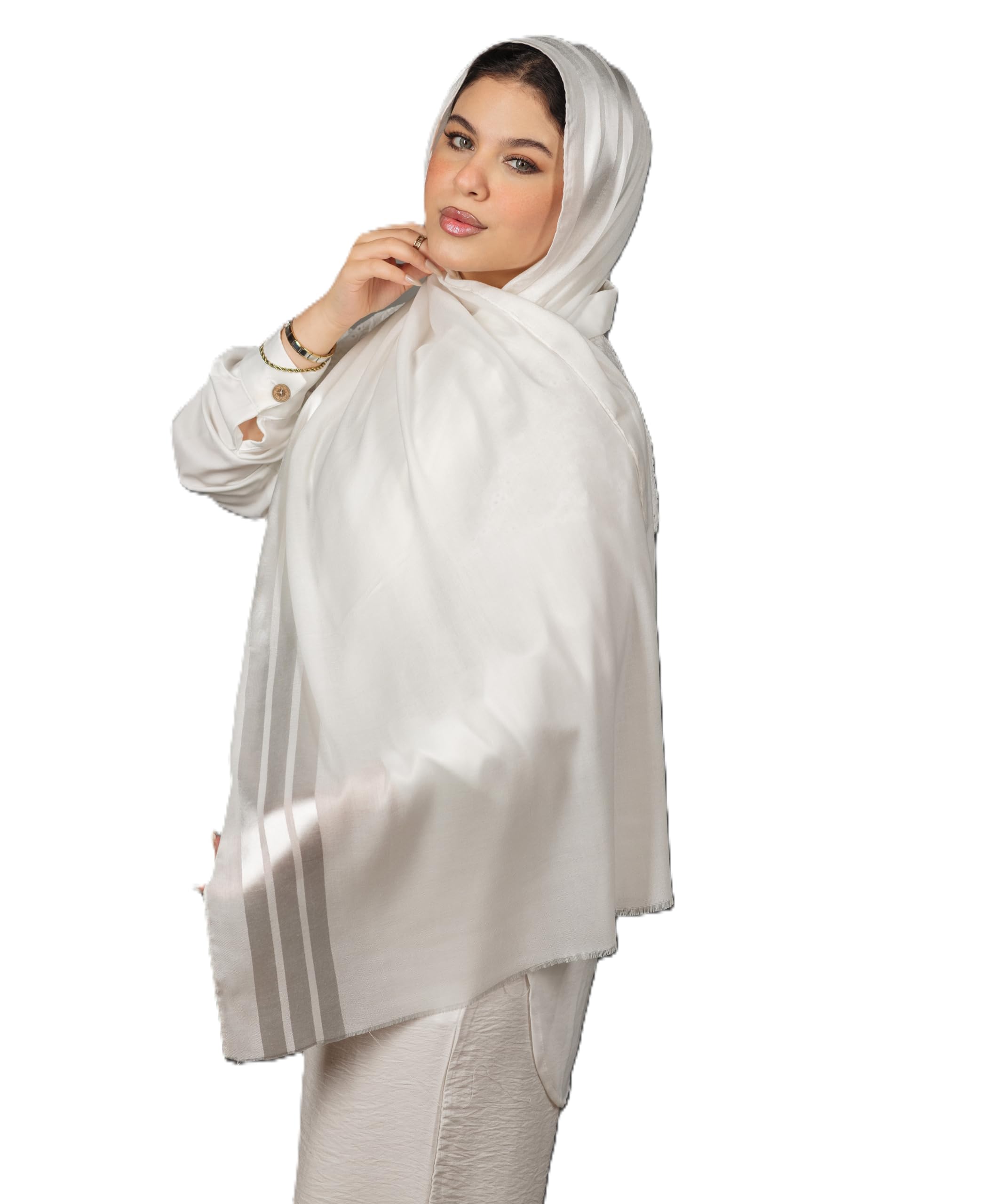 سكارف من الشاش القطني مع 3 خطوط ساتان من ميلا، هدية راقية للمناسبات الخاصة – قماش انيق فاخر – نمط متعدد الاستخدامات واكسسوار مثالي لك – حجاب للنساء – مقاس (70 سم × 1.75م)