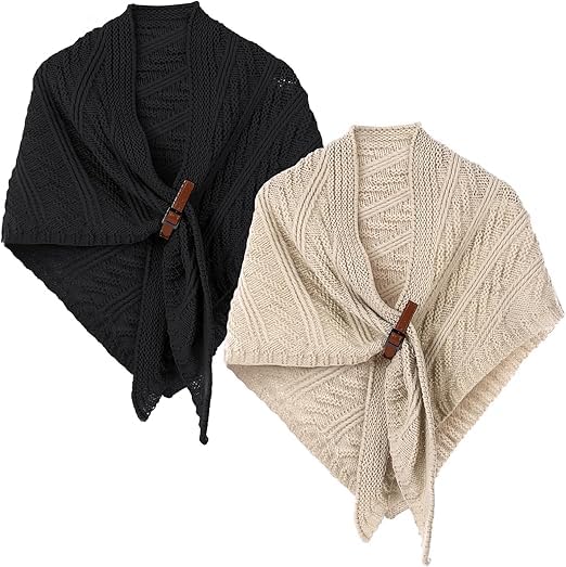 شال نسائي دافئ محبوك مثلث شال شتوي وشاح لف كروشيه بونشو لفساتين السهرة الباشمينا لحفلات الزفاف ووصيفة العروس (قطعتين، بيج واسود)