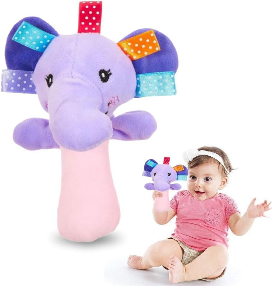 شخشيخة بيبي سوفت ناعمة_شخليلة بألوان وأشكال جذابة لصغيرك، لعبة صوتية ناعمة للتسلية (تصميم فيل بلون موف)