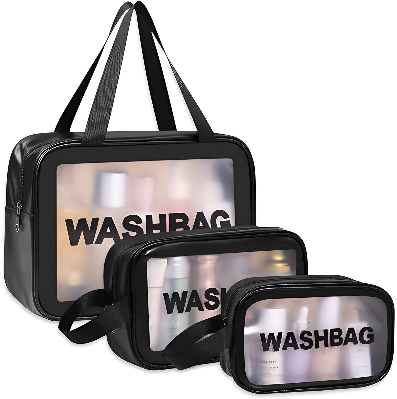 شنطة مكياج أساسية للسفر للبنات مصنوعة من بلاستيك بي في سي مقاومة للماء ومتينة، مجوعة من ثلاث شنط ملونة لتخزين مستحضرات التجميل وأدوات التجميل والعناية الشخصية بكفاءة