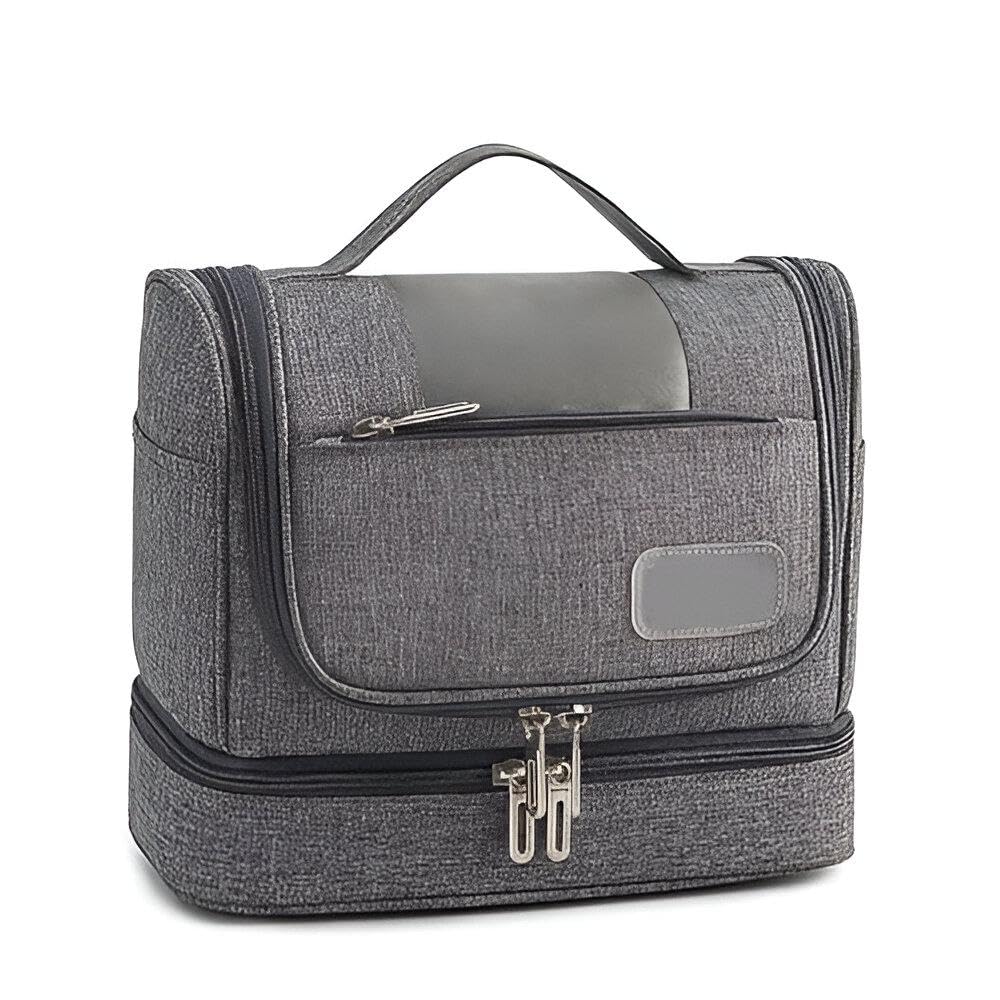 شنطة مكياج مقاومة للماء، شنطة أدوات سفر مزودة بخطاف للتعليق للرجال والنساء، تتسع لمستحضرات التجميل والفرش والشامبو والبلسم والأغراض الشخصية (لون رمادي فاتح)