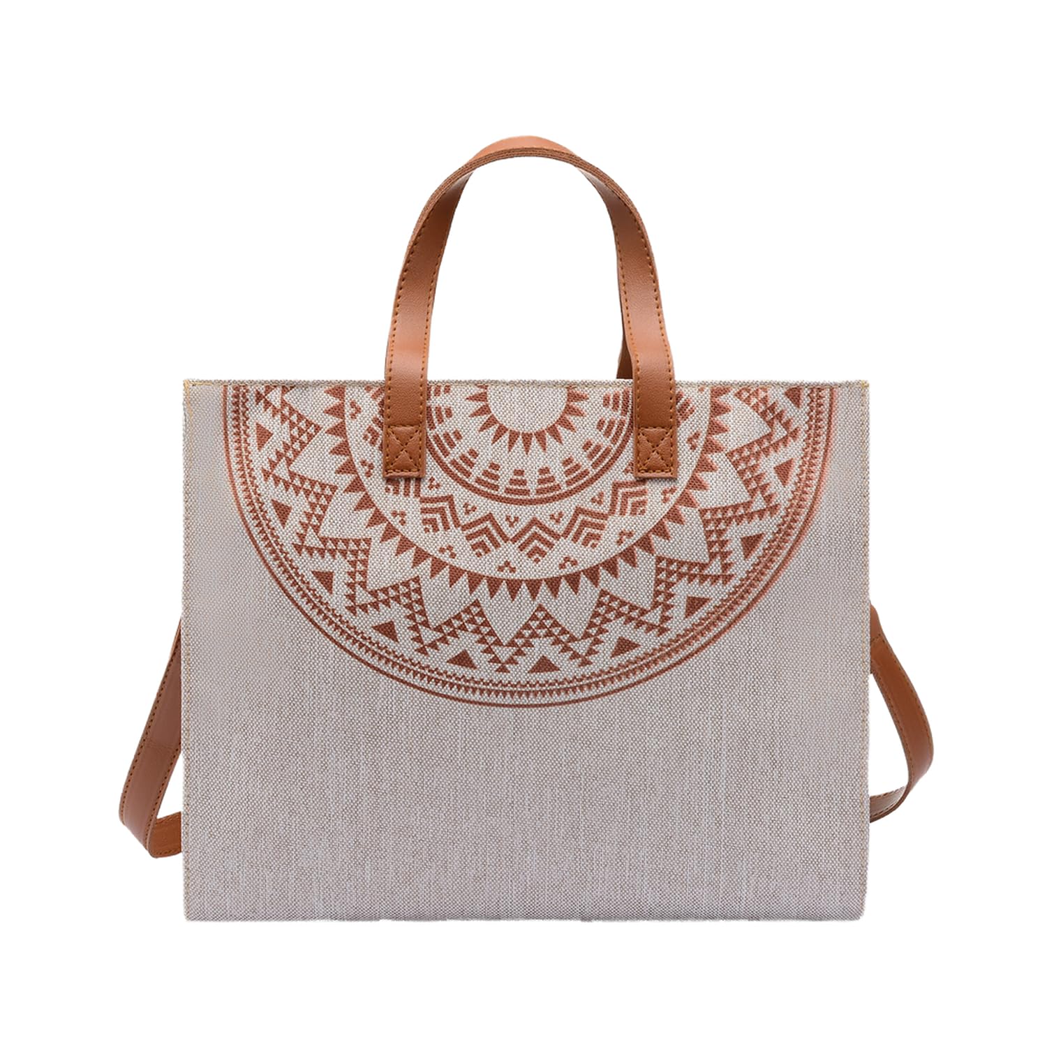 أضف لمسة فنية عصرية إلى ملابسك مع شنطة توت من الكتان البيج للفتيات المصنوعة من مزيج من القطن والكتان الناعم، مع مقابض من الجلد الطبيعي وحزام طويل، تتميز هذه الحقيبة بطباعة دائرية أنيقة بألوان ترابية. واسعة (34 × 28 × 10 سم) وعملية مع سحاب إغلاق وجيب داخلي، مثالية للضروريات اليومية. خفيف الوزن ومنظم ومصمم للاستخدام اليومي.